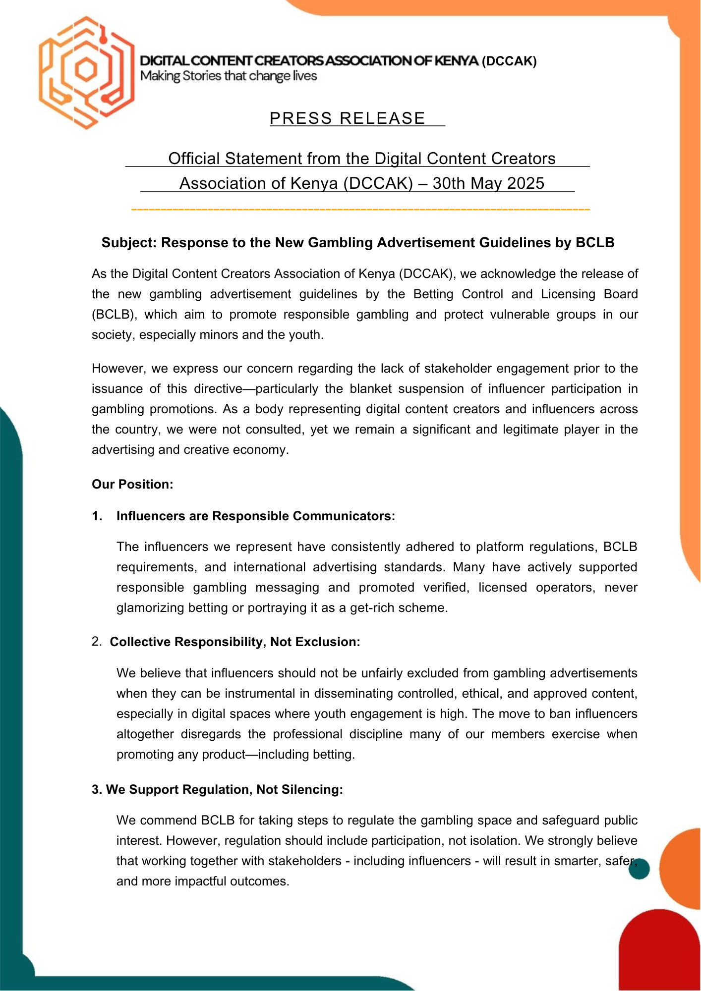 At DCCAK, we are creators, but we are also citizens, change-makers, and custodians of Kenya’s future.